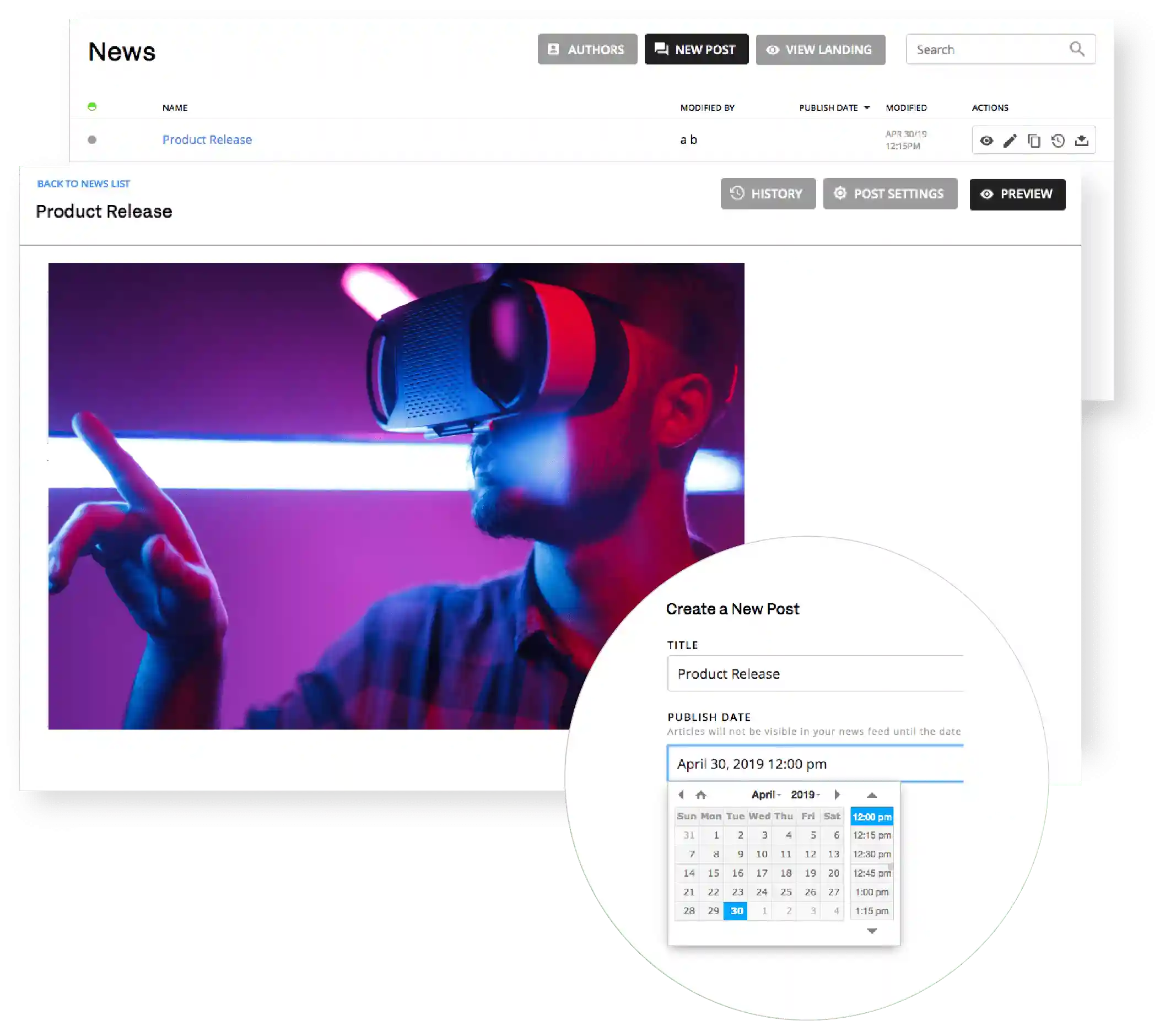 The BlokBlok News module lets content managers publish time-sensitive, blog-like content that keeps audiences engaged and in-the-know. News posts are highly specialized pages that are configured to handle publication dates, authorship and categorization using Sets. Just like everything else in BlokBlok CMS, News posts are built using standard or custom blocks.